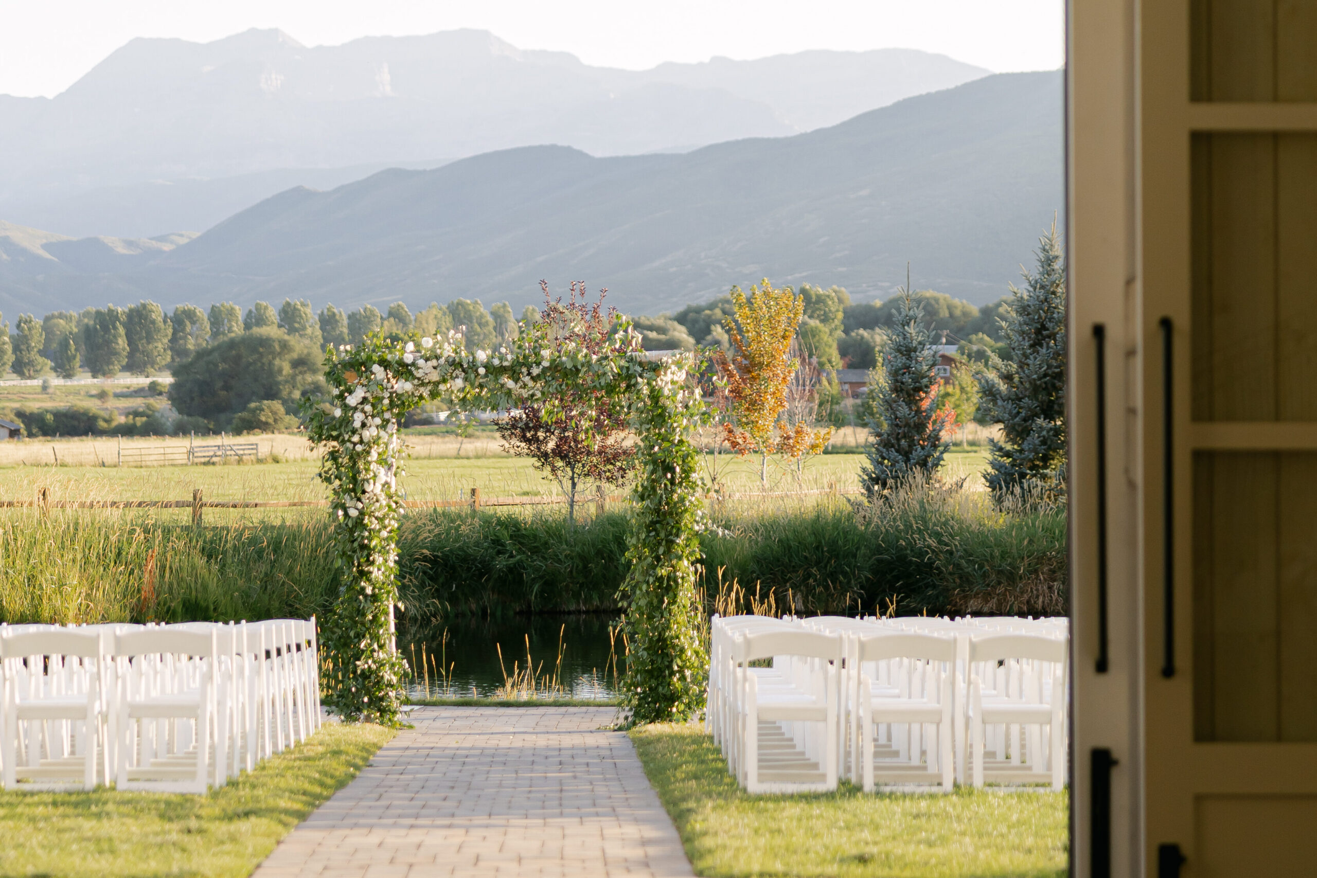 It was truly an honor to design the florals for this beautiful wedding on a windy day at River Bottoms Ranch in Midway, Utah. The day was filled with timeless white florals, lush greenery, and thoughtful modern details that felt both elevated and personal. From the greenery-covered chuppah to the candlelit reception and romantic sweetheart table, every floral element was designed to complement the stunning mountain setting and celebrate the couple in a meaningful way.